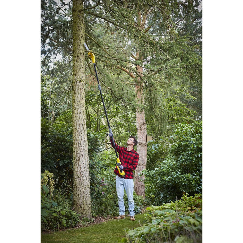 ✔ Телескопічна штанга з удлиннением до 3 м, ″тиха″ робота, функція миттєвої зупинки ланцюга, спеціальне кріплення для для зберігання, сумісність з серією SFM Powertools 20 В