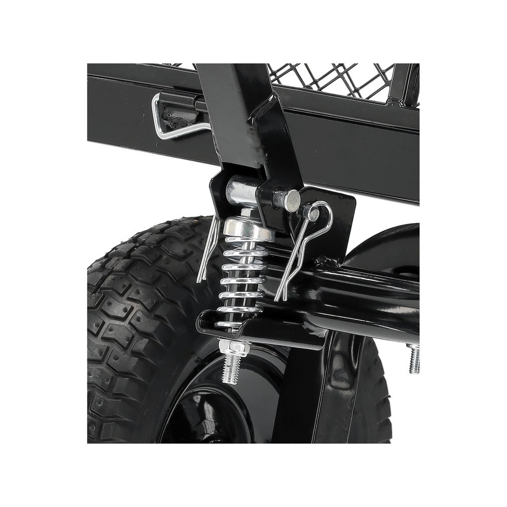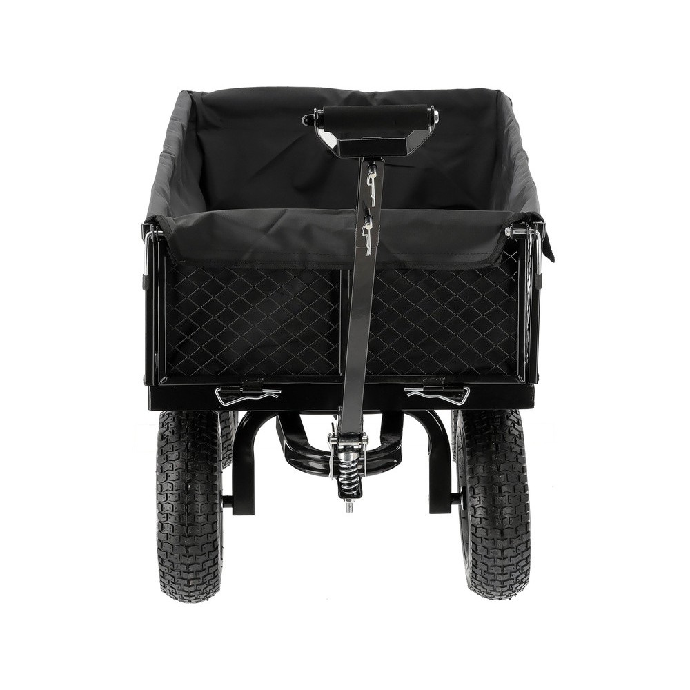 - Спеціальна конструкція дишла дозволяє причіплювати візок до садової техніки, такої як трактори, виконуючи роль причепа