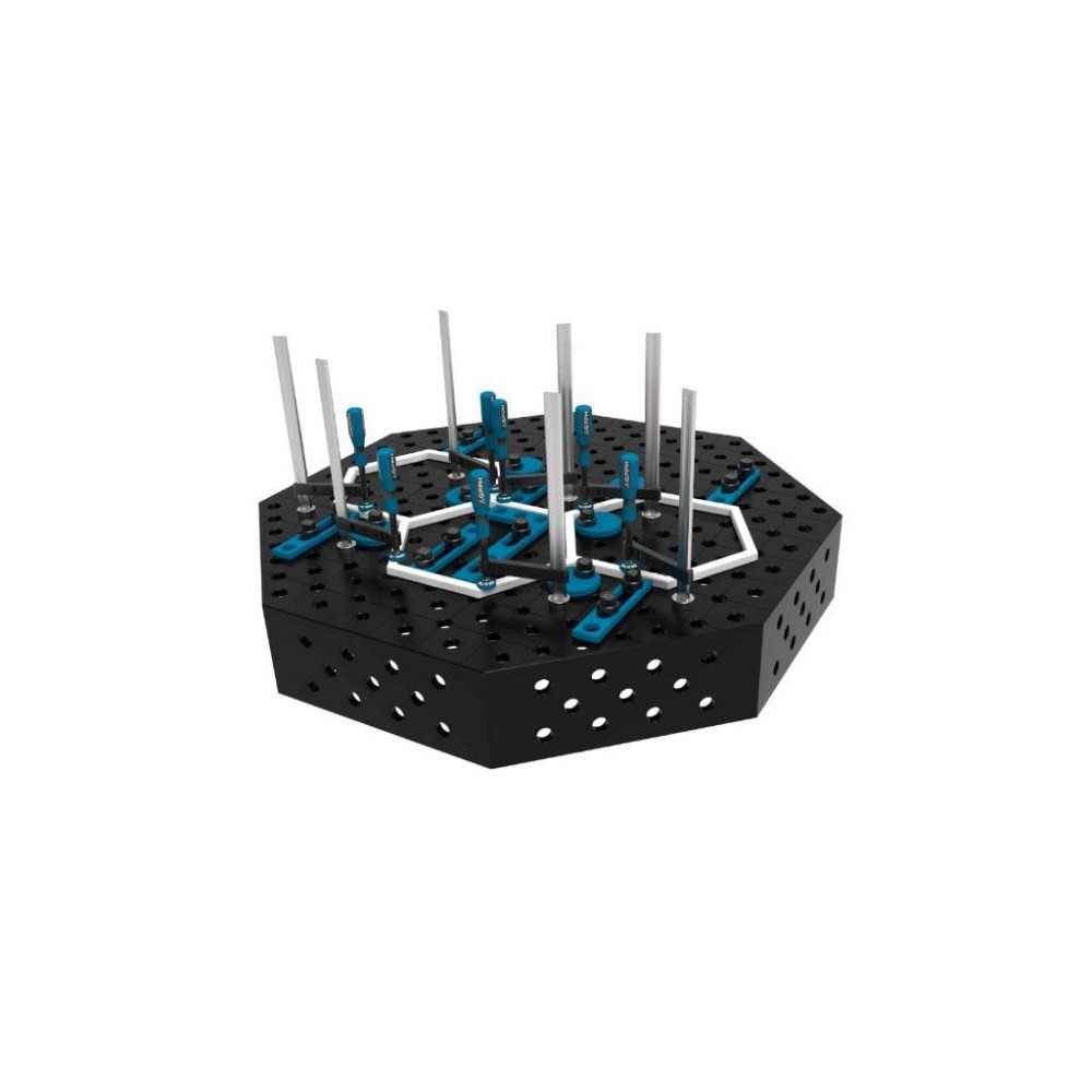 Восьмикутний зварювальний стіл GPPH OCT PRO призначений для роботизованого зварювання і має унікальну октагональну форму, яка ідеально підходить для автоматизованих зварювальних систем та дозволяє максимально ефективно організувати робочу зону. Представлений у 5 варіантах типорозмірів і у серіях PRO, PRO INOX, PLUS, PLUS INOX. Матеріал виготовлення - вуглецева сталь S355J2+N або нержавіюча сталь марки 1.4301.