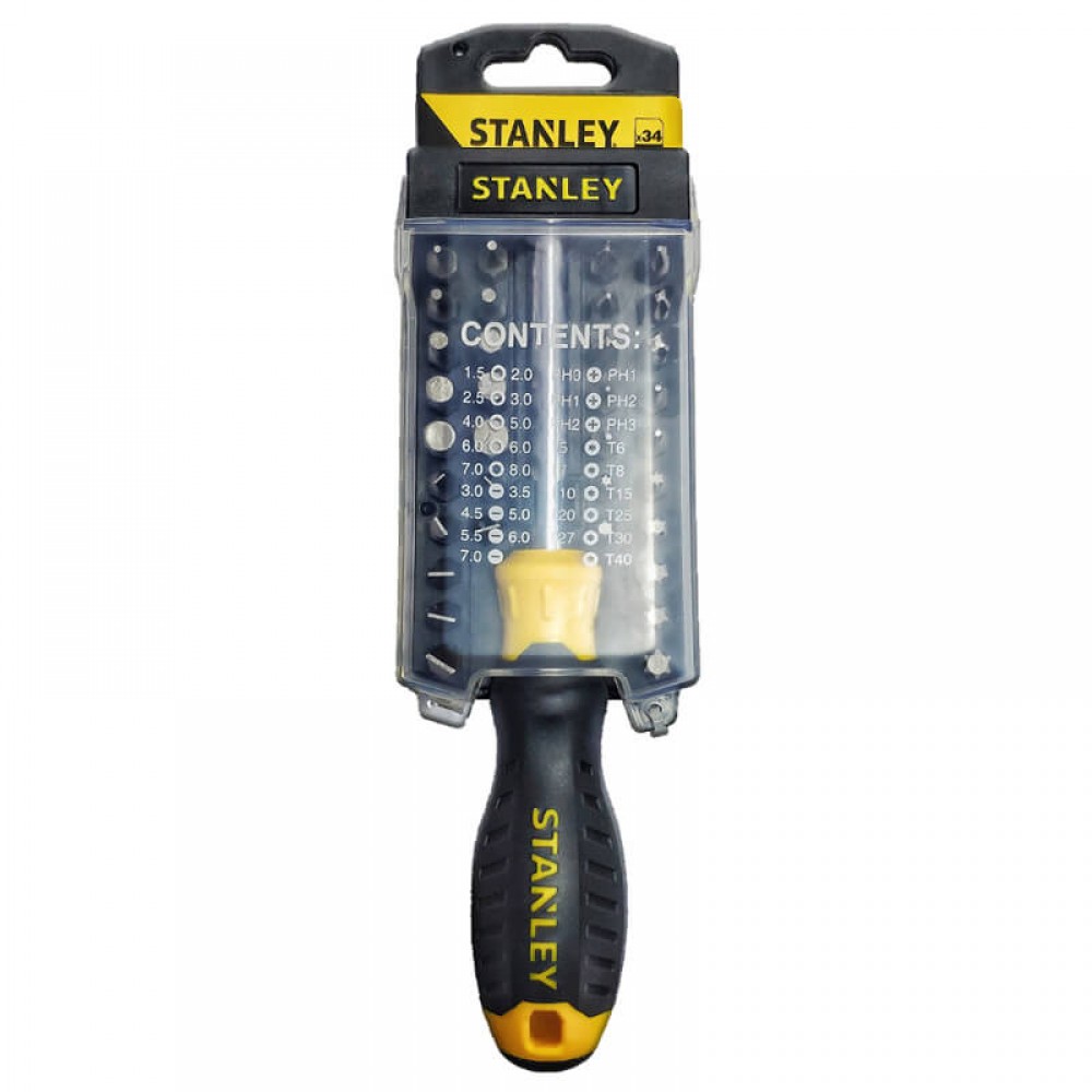 Викрутка багатофункціональна STANLEY ″Multibit″ c насадками, 34 одиниці: викрутка утримувач для насадок 1/4 ″;викруткові насадки: ″SL″ - 3; 3,5; 4,5; 5; 6; 7 мм;″PH″ - Ph0; Ph1х2шт; Ph2х2шт .; Ph3;″Torx″ -Т5; Т6; Т7; Т8; Т10; Т20; Т25; Т27; Т30; Т40;″Шестигранник″ - 1,5; 2; 2,5; 3; 4; 5; 6х2шт .; 7; 8 ммВ упаковці
