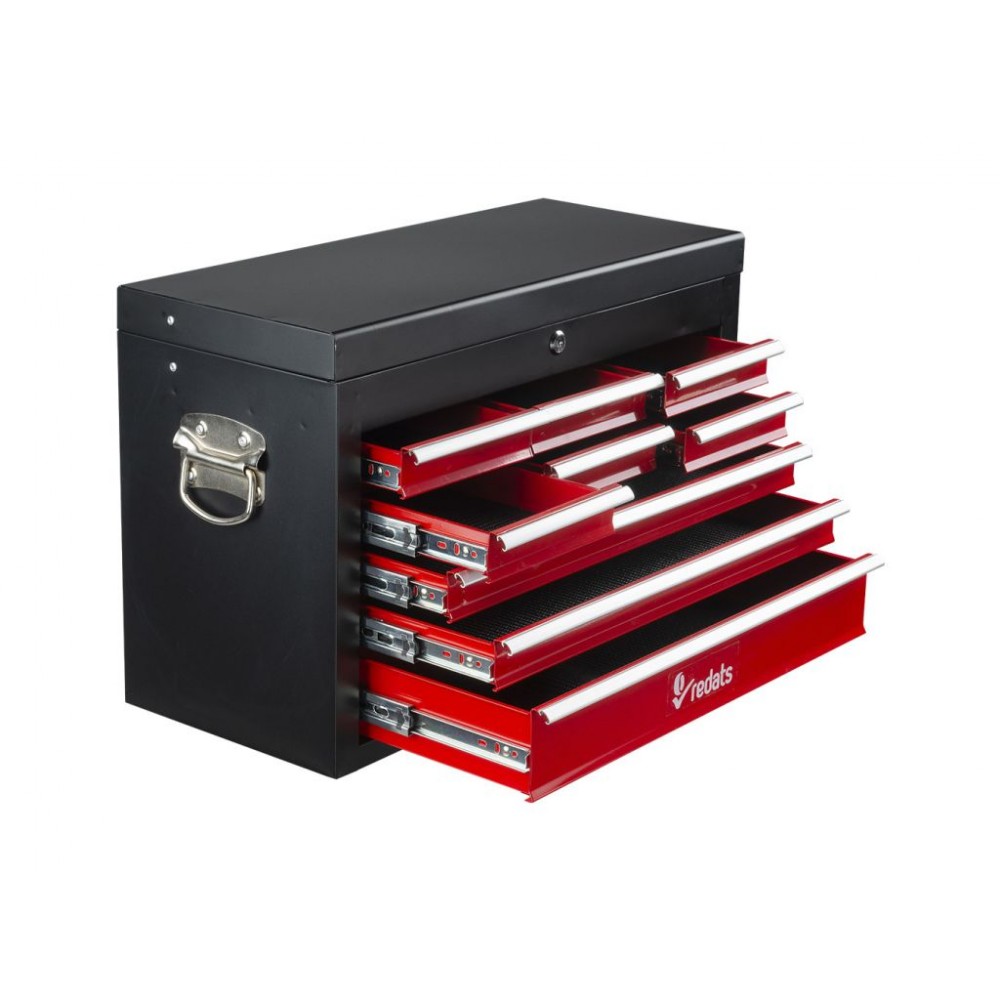 Ящик для інструменту REDATS Black - це чудовий аксесуар для зручного зберігання і транспортування інструменту, який додасть комфорту і організованості вашому робочому місцю. Невеликий розмір, вага 13,5 кг і 2 ергономічні ручки дозволяють легко переносити його з місця на місце, а 9 містких шухляд - компактно розмістити все необхідне для роботи.