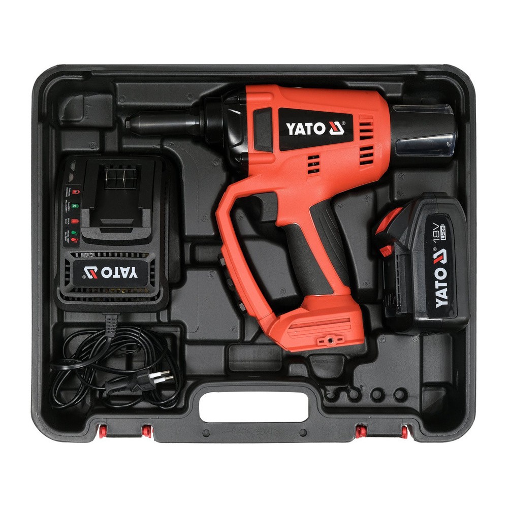 Заклепочник живиться від акумуляторів системи Yato 18V (продаються окремо), які забезпечують загальну платформу для широкого спектру обладнання, такого як ударні гайковерти, перфоратори SDS+, кутові шліфувальні машини тощо.