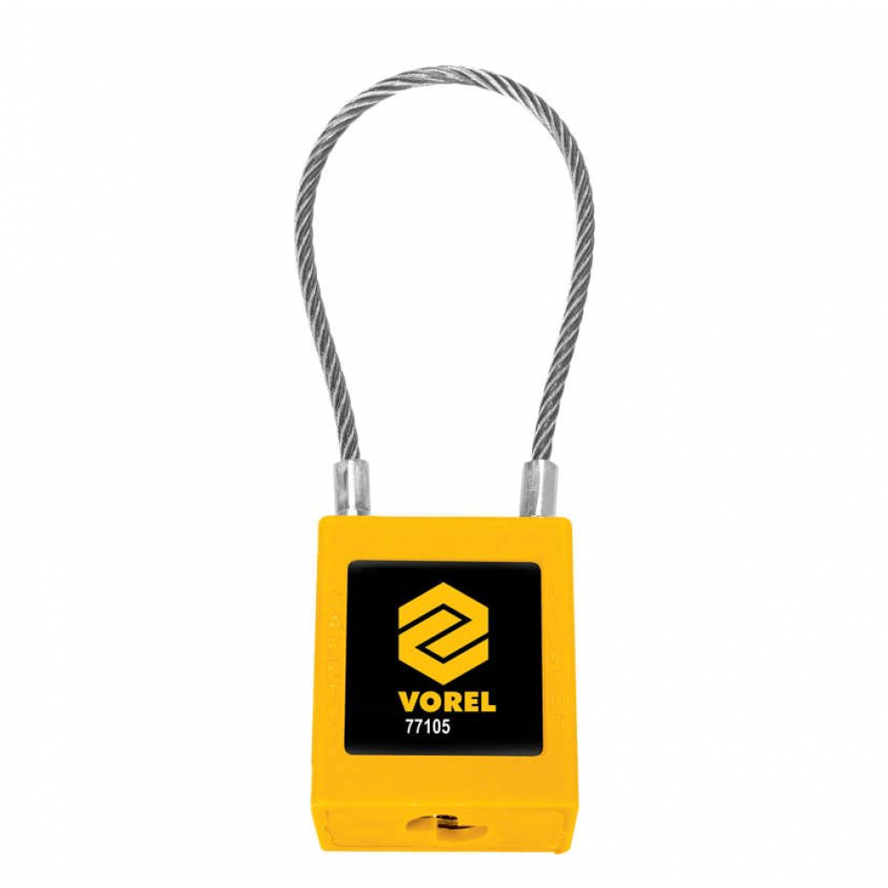 Замок навісний VOREL з тросов. дугою Ø= 3,2мм, l= 175мм, 2 ключі, корпус покрит нейлоном- 40х20х45мм