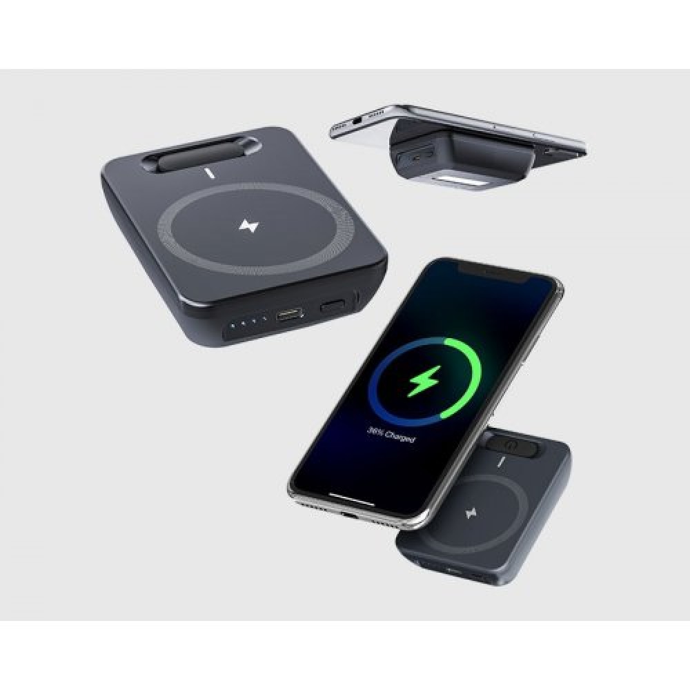 - Наявність знімного павербанку з бездротовою зарядкою - 6400 мА/год/24 Вт/год. Павербанк вбудований у кришку зарядної станції.