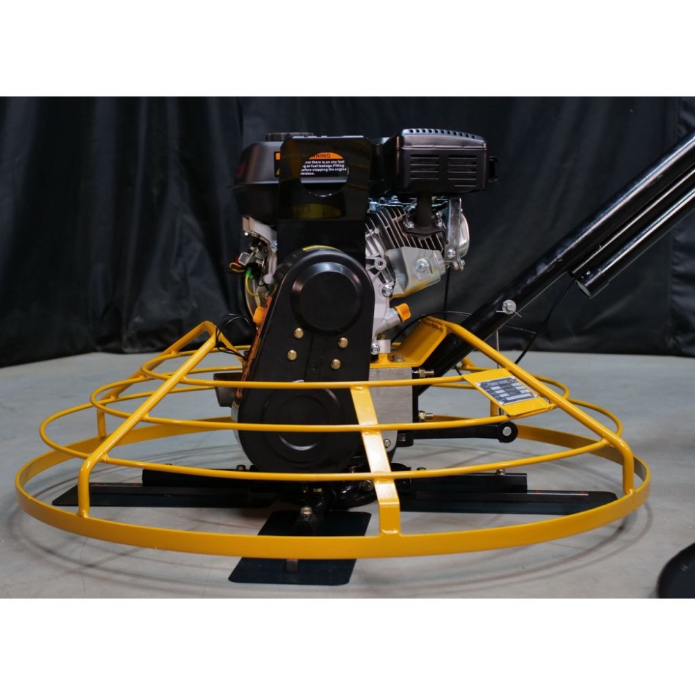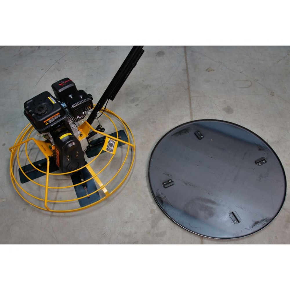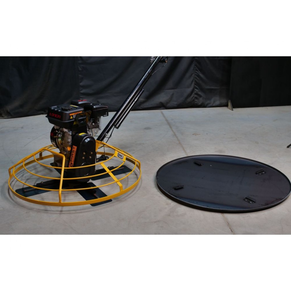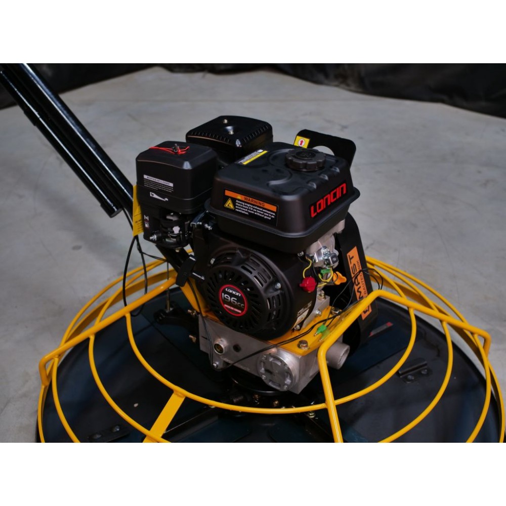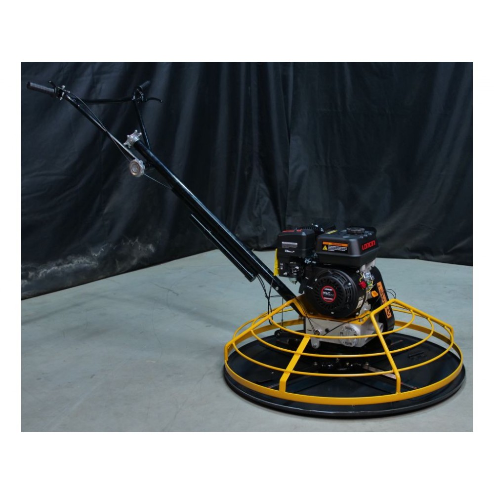 Витривалий бензиновий двигун LONCIN G200F потужністю 4,1 кВт і плавне регулювання швидкості обертання лопатей у діапазоні 60-140 об/хв забезпечують високу продуктивність обробки і швидке досягнення ідеального результату. Місткість паливного бака 3,6 л дозволяє тривалу роботу без зупинок для дозаправки. Завдяки ергономічній ручці, компактному дизайну і простому керуванню ця бетонозатиральна машина надзвичайно зручна в експлуатації. В комплект поставки входить сталевий диск для шліфування.