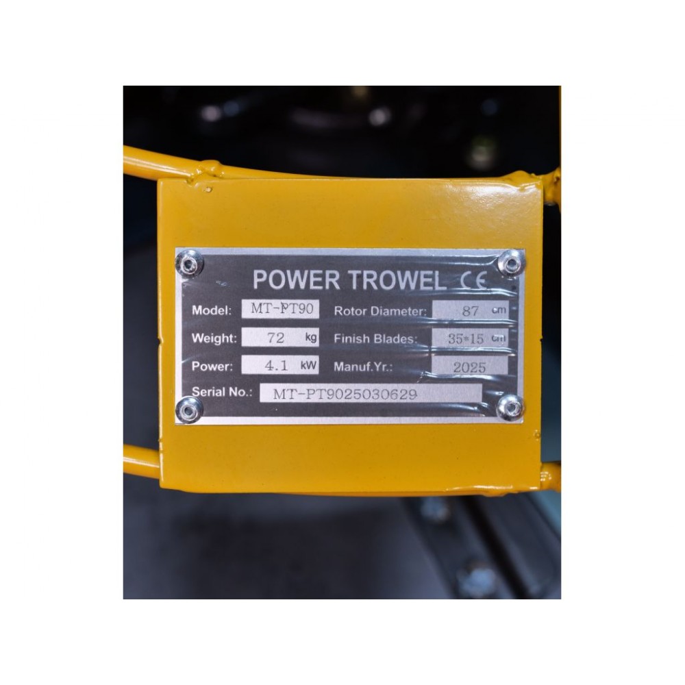 Затиральна машина по бетону MAST Bautechnik MT-PT90 - це ефективне обладнання для вирівнювання та згладжування бетонних поверхонь і стяжки, оснащене 4 лопатями розміром 350х150 мм. Діаметр затиральної області 900 мм дозволяє швидко обробляти великі площі, а нахил лопатей під кутом 0-15° - якісно опрацьовувати ділянки впритул до стін та згладжувати кути і краї. Запобіжне кільце запобігає вдарянню лопатей об стіни та інші перешкоди.