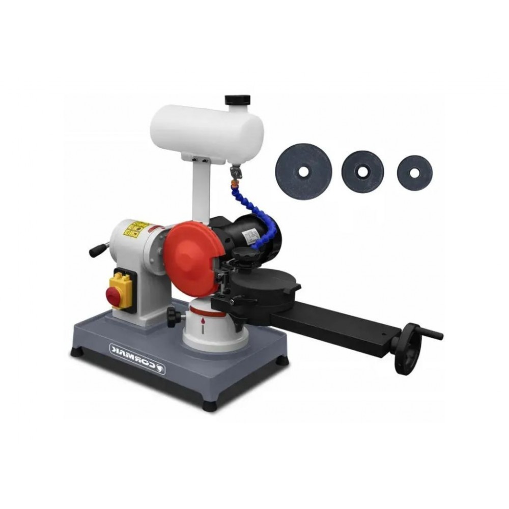 Заточувальний верстат для циркулярних пил CORMAK JMY-870 - це спеціалізоване обладнання для заточування твердосплавних циркулярних пил діаметром 80-700 мм. Комплектується редукторами для отворів різного діаметра. Поставляється з високоякісним алмазним кругом діаметром 125 мм, який забезпечує ефективне і точне заточування та має високу зносостійкість. Двигун потужністю 250 Вт забезпечує достатню продуктивність для якісного заточування. Живлення від стандартної електромережі 230 В.
