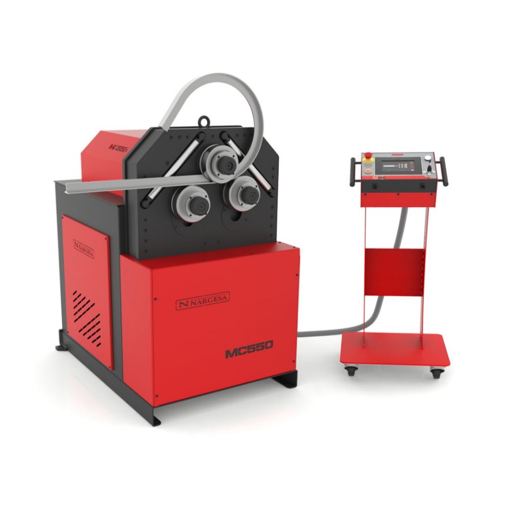 Профілегиб електро-гідравлічний верстат Nargesa MC 550 CNC призначений для згинання дуг із труб різного перерізу (круг, профіль), смуги, прутка, квадрата, тавра, швелера, алюмінієвих та стальних профілів. Ця модель може бути встановлена як у вертикальному положенні, так і в горизонтальному. Дозволяє виробляти якісні вироби будь-якого радіусу без розривів і зминання профілю за один прокат.