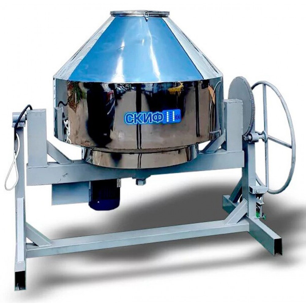 Представлений змішувач об'ємом 800 л призначений для змішування харчових продуктів. Міцна конструкція виконана з довговічної нержавіючої харчової сталі, внутрішня частина оснащена металевими лопатками. Виливання суміші здійснюється шляхом перекидання барабана.
