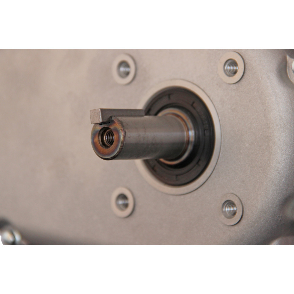 Ланцюговий знижувальний редуктор з відцентровим зчепленням від LIFAN встановлюється на двигуни загального призначення з діапазоном потужностей від 9 до 18 к.с. із вихідним валом 25 мм. під шпонку. Він призначений для зниження робочих оборотів двигуна на величину вдвічі меншу по відношенню до вихідного значення (як правило з 3200 до 1600 об/хв.) і одночасним збільшенням моменту, що крутить, в два рази на вихідному валі. При цьому вихідний вал редуктора починає обертання тільки після примусового збільшення обертів двигуна з вихідних обертів холостого ходу. Це найбільш безпечний варіант активації механізмів, що обертаються, який дозволяє оператору контролювати і приводити в дію підключений до двигуна агрегат не з моменту запуску самого двигуна а тільки після примусового збільшення оборотів. Редуктор пропонується з вихідним валом 22 мм для двигунів 177F/182F/188F/190F від 9 л. до 18 л.с.). Деталізовані дані для правильного підбору наведені у таблиці нижче. Об'єм оливи, що рекомендується, в редукторі становить 0,5 л. Стандартне масло, що рекомендується, SАЕ 10W40, проте в більш навантажених режимах експлуатації допустимо до використання і трансмісійне масло класу 75W-90 не нижче API GL-4. Доповнення: практики конструювання та експлуатації саморобних транспортних засобів (болотоходів, баггі, "мотособак", картів і тп) в редуктор може бути залито масло для автоматичних трансмісій ATF DEXRON III - такий варіант доцільний при надмірно навантаженому варіанті передачі крутного моменту від двигуна до агрегату, до приводу шасі або іншого пристрою. Звичайні типи трансмісійних масел можуть застосовуватися в передачах тяги при значних швидкостях, але невеликих або помірних моментах, що крутять. Також встановлюють ланцюговий редуктор зчеплення на мінітракторі, на прокатні карти також відцентрове зчеплення підходить до приводних механізмів моторних човнів зі стаціонарно встановленими двигунами. У комплекті з редуктором додається набір кріпильних болтів зі стандартним кроком різьблення для фіксації на корпусі двигуна.
