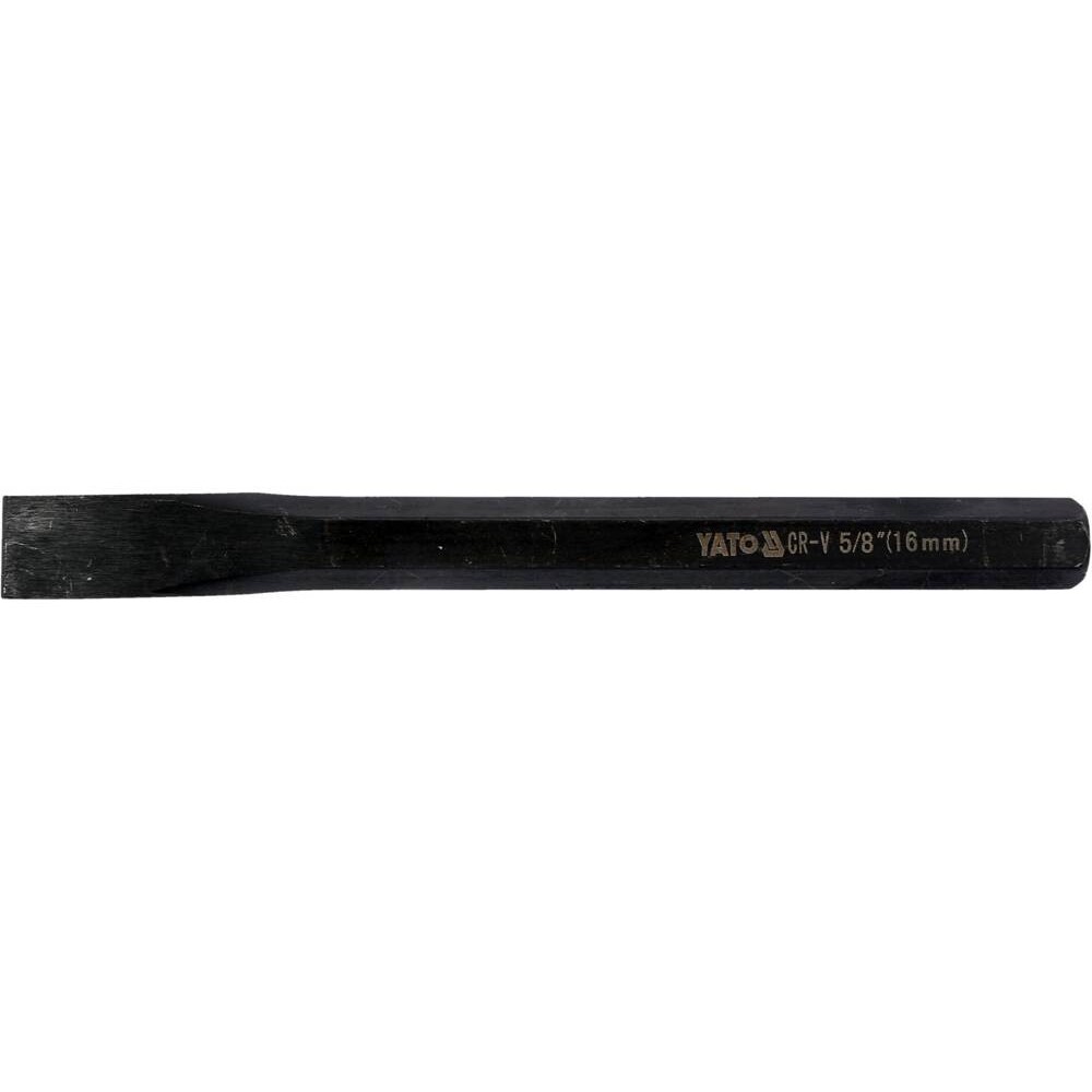 Сплющена робоча частина із загостреним фрезерованим краєм, зубило залишає слід на матеріалі при ударі молотком, загальна довжина 172 мм, ширина 16 мм, ручка з шестигранним профілем 9,4 мм. Виготовлений зі сталі CrV6150, повністю чорнений. Слюсарне зубило для роботи по металу, довбання, надрізання, маркування, відрізання болтів або заклепок та інших подібних застосувань.