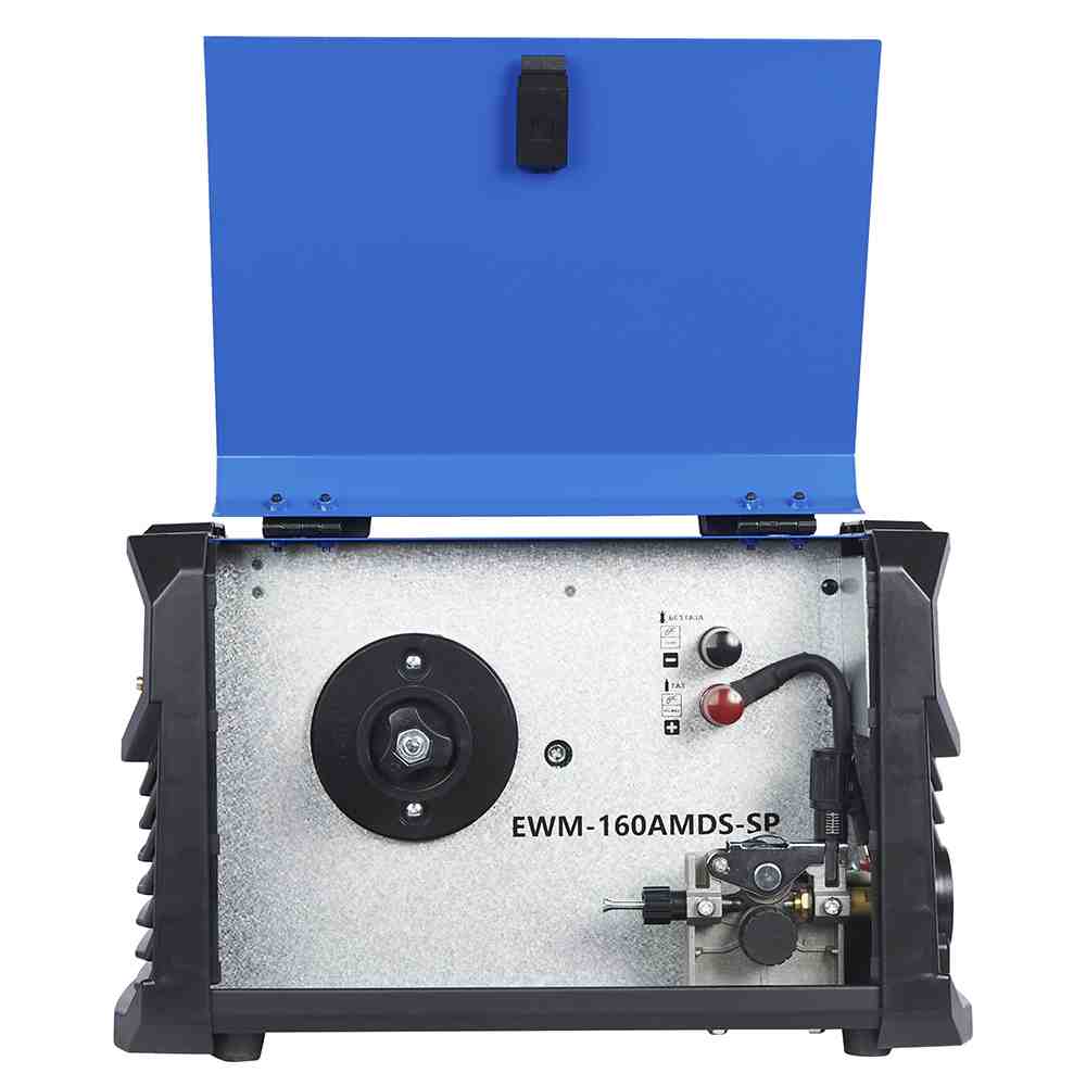 ✔ Модель EWM-160AMDS-SP має вбудований механізм подачі дроту, розрахований на котушки вагою 100 мм (1 кг)/200 мм (5 кг). Діамаетр зварювальної дроту 0.6-1.0 мм. Регулювання швидкості подачі дроту.