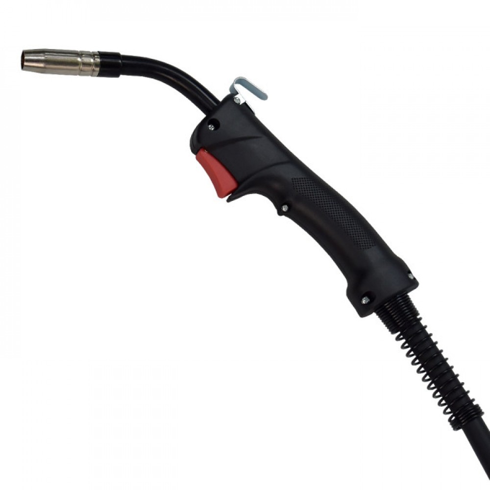 Пальник MB-15AK - це класичний пальник для напівавтоматичного (MIG/MAG) зварювання в середовищі захисного газу. Він відрізняється невеликими розмірами і зручний у використанні. Подача газу і дроту керується вбудованою кнопкою. Компактний, але надійний і продуктивний пальник стане надійним помічником як для робіт у побуті, так і для невеликої ремонтної майстерні, коли зварювання виконується на низьких струмах. Охолоджується пальник повітрям, а це значить, що немає необхідності для зварювальних робіт купувати додатково блок рідинного охолодження. Пальником MB-15AK можна укомплектувати практично будь-який зварювальний напівавтомат вітчизняного або закордонного виробництва, номінальний зварювальний струм якого не перевищує 200А, а підключення здійснюється за допомогою роз'єму KZ-2. Пальник випускається з довжиною шланг-пакету 3 метри.