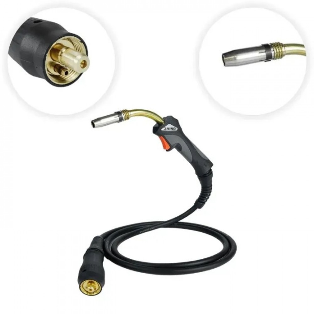 Пальник RHINO MB24 3 м може використовуватися з усіма апаратами серії MIG/MAG, відрізняється оптимальним співвідношенням характеристик і зручна в експлуатації.Компактний та продуктивний пальник розроблений для універсального використання як у промисловості, так і в побутових умовах з максимальним струмом 250 А. Завдяки маленьким розмірам ідеально підходить для складних маніпуляцій у стиснених умовах. Пальник може працювати з будь-якими типами дроту діаметром 0,8-1,2 мм. Також підходить для зварювання самозахисними порошковим дротом (без газу) типу E71T-GS і E71T-1. RHINO MB24 зроблена із застосуванням сучасних технологій та має високу якість.Відмінними рисами пальників серії RHINO є комфорт та простота в експлуатації за доступної ціни. Пальник оснащений зручною рукояткою та євро-адаптером, завдяки якому з легкістю підключається практично до будь-якого побутового та професійного зварювального обладнання. У комплектацію входять всі необхідні роботи витратні частини.Зварювальні пальники RHINO відповідають європейському стандарту електробезпеки EN60974-7:2013, а також європейській директиві безпеки щодо низьковольтного обладнання 2014/35/EU.• гнучкий шланг-пакет із шарнірними з'єднаннями• універсальний KZ-2 роз'єм для підключення до всіх сучасних зварювальних апаратів• зручна рукоятка• гарантія якості
