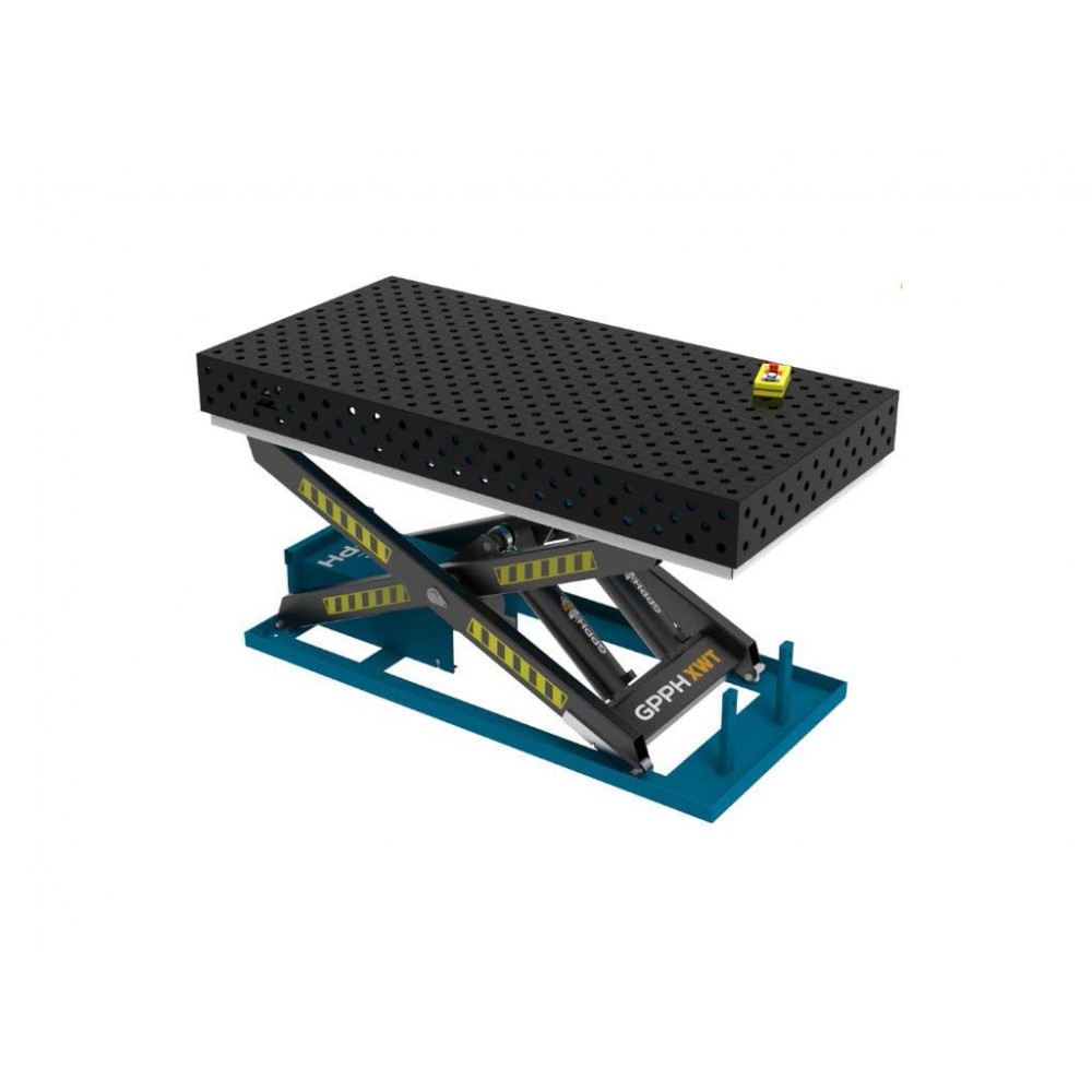 Зварювальний стіл GPPH XWT (8 мм, 12 мм, 15 мм) з гідравлічною системою підйому та електродвигуном потужністю 2,2 кВт дозволяє плавно регулювати висоту стільниці у діапазоні 470-1200 мм, налаштовуючи її відповідно до робочих потреб. Є можливість вибору товщини стільниці (8 мм, 12 мм або 15 мм) і моделі (PRO, PRO INOX, PLUS, PLUS INOX та ECO). Пропонується 4 варіанти типорозмірів (1500х1000 мм, 1500х1480 мм, 2000х1000 мм та 2400х1200 мм). Матеріал виготовлення - високоякісна сталь S355J2+N або нержавіюча сталь марки 1.4301.